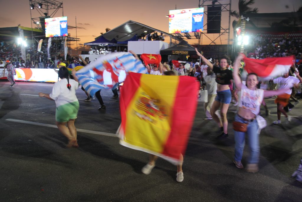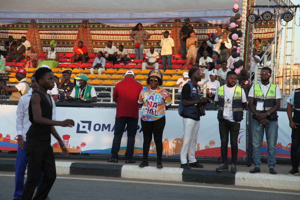 Durante estas operações, um movimento simbólico chamou a atenção: autocarros repletos de estrangeiros estacionaram ao longo da Marginal. Eram turistas vindos de diferentes países, curiosos por testemunhar os bastidores da maior festa cultural de Angola. Munidos de câmaras e telemóveis, registavam cada detalhe com admiração — a montagem das alegorias, o alinhamento das equipas técnicas, os primeiros ensaios, a estrutura sonora a ser testada. Para muitos, observar a engrenagem do Carnaval antes da abertura oficial foi já um espetáculo por si só.